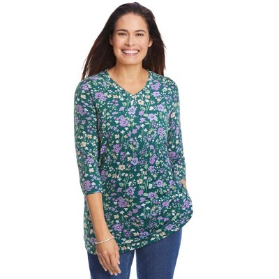 Woman Within Perfect Printed Long-Sleeve Henley Tee