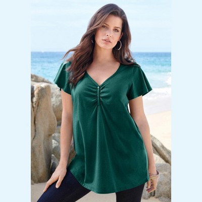Roaman's Plus Size Cotton Ultimate Flutter Sleeve Sweetheart Tee