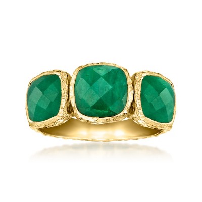Ross-Simons 5.50 ct. t.w. Bezel-Set Emerald 3-Stone Ring in 18kt Gold Over Sterling