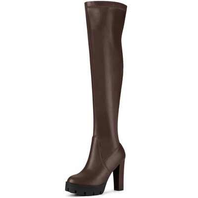 Allegra K Women's Platform Heels Chunky Heel Over Knee High Boots