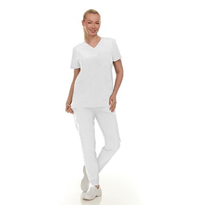 MediChic Womens 8-Pocket Scrubs Set- V-Neck with 4-Pocket Jogger Scrub Pants