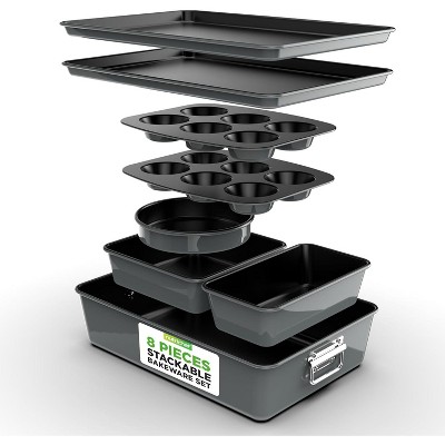NutriChef 8 pc Nonstick Carbon Steel Bakeware Set with Black Silicone Handles (NCSBS52S.5)