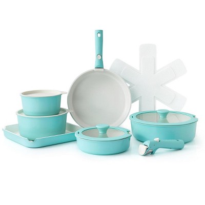 Aoibox Deluxe 14PC Healthy Cookware Set with 9H Anti-Scratch Coating, 2-Layer Non-Stick Ceramic, Even Induction Cooking, Infrared Enhanced Flavor