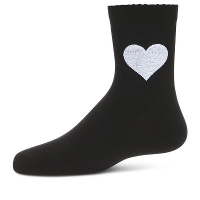 Memoi Girls Cozy Ribbed Cotton Blend "Graffiti Heart" Crew Sock