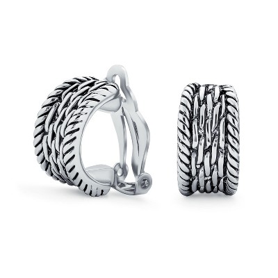 Bling Jewelry Fashion Cable Weave Wide Half Hoop Clip On Earrings Non Pierced Ears Oxidized