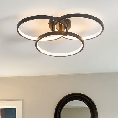 BAOURE 20" Modern Black LED Ceiling Light, 3-Ring Flush Mount Fixture for Living Room, Bedroom, Dining Room, Energy-Efficient