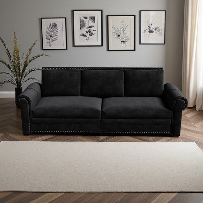 - velvet rolled arm sofa