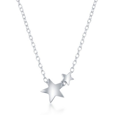 Bella Silver Sterling Silver Star with Smaller Star Dainty Necklace - Silver - 16+2 Inch