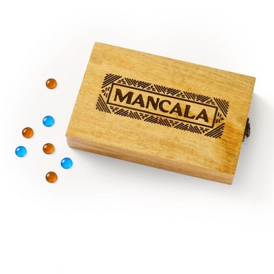 Matr Boomie Mancala Wooden Board Game Set Hand Carved Mango Wood 48 Glass Marbles Foldable