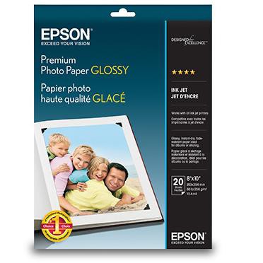 Epson Premium Photo Paper Glossy, 8" x 10", 20 sheets