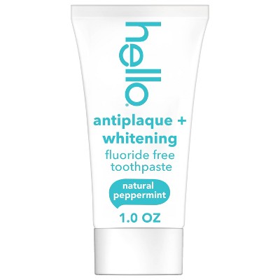 hello Antiplaque and Whitening Fluoride Free Travel Toothpaste - Natural Peppermint - 1oz