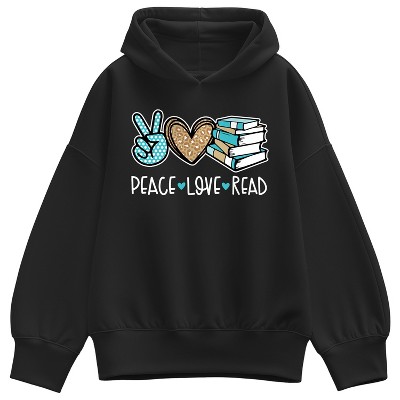 Women's Instant Message Peace Love Read Oversized Fleece Hoodie Sweatshirt - Black - Medium