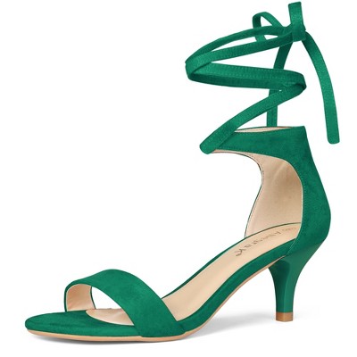 BLISSFUL STEP Women's Kitten Heel Open Top Lace-Up Sandals