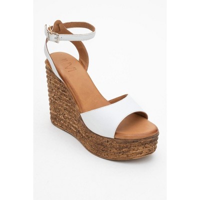 Elsie - White Wedge Leather Sandal (Women) | Forever & Always Shoes
