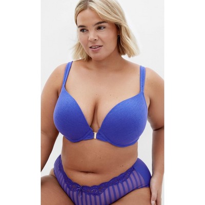 Women's Plus Size Smooth & Chic Front Close Cotton Push Up Bra - blue | CITY CHIC