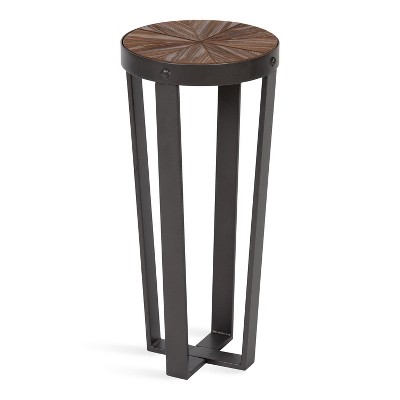 miBasics Bracken End Table Oak/Brown: Farmhouse Style, Industrial Design, Metal Frame, Wood Top, Storage Shelf