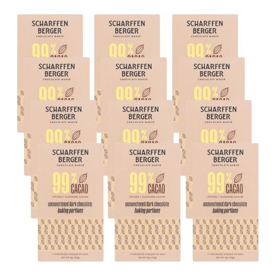Scharffen Berger Unsweetened Dark Chocolate 99% Cacao Baking Portions - Case of 12/4 oz