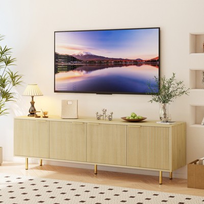 Zevemomo 68.89" TV Stand for TVs up to 75'', Fluted TV Console with 5 Storage Compartments & Sturdy Metal Legs, for Living Room, Natual Oak