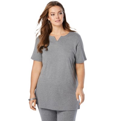 Roaman's Plus Size Soft Knit Tunic With Notch Neckline
