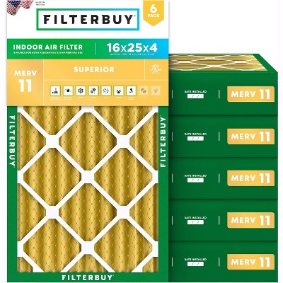Filterbuy 16x25x4 Air Filter (6-Pack), Pleated MERV 11 Allergen Defense Replacement HVAC AC Furnace Filters (Actual Size: 15.50 x 24.50 x 3.63)