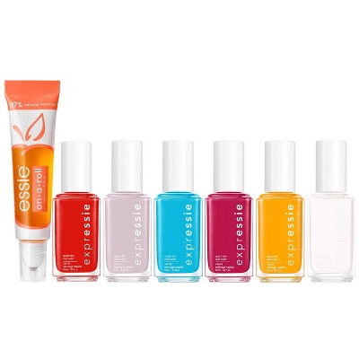 essie new quick dry expressie nail color collection & apricot cuticle oil on-a-roll