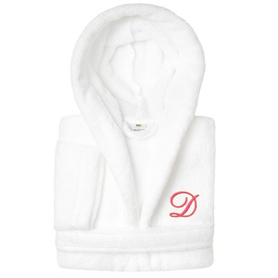 Personalized Linum Kids 100% Polyester SUPER PLUSH Double Brushed Hooded Bathrobe in White Bookman Font