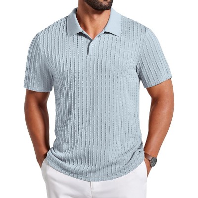 COOFANDY Mens Polo Shirt Textured Knit Button Casual Short Sleeve Summer Vacation Beach Stretchy Golf Shirts Light Blue XL