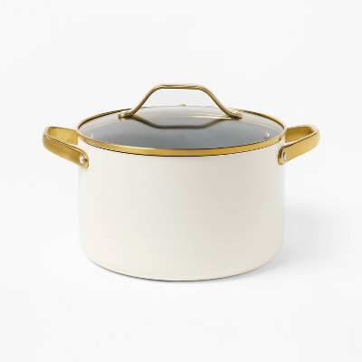 8qt Nonstick Ceramic Coated Aluminum Wide Stock Pot with Champagne Handle Cream - Figmint