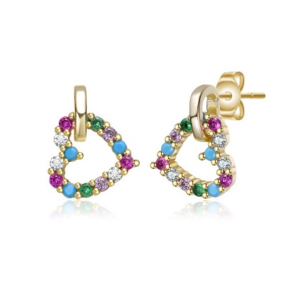 Guili 14k Yellow Gold Heart Earrings, Gemstone Outline, Playful & Vibrant, Perfect for Everyday Sparkle and Cheerful Celebrations.