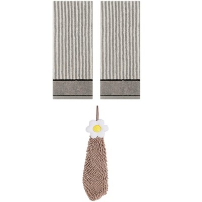 REGALWOVEN 3 Pack Solid Stripe Absorbent Soft Decorative Hand Towels for Bathroom 13" x 30"