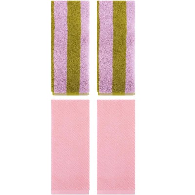 REGALWOVEN 4 Pcs Cotton Soft Absorbent Stripe Pattern Bathroom Hand Towel