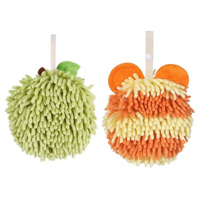 REGALWOVEN Fuzzy Cute Cartoon Decorative Hand Drying Hanging Ball Hand Towels 7" x 7" 2 Pcs