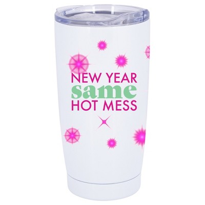 100 North 20 Ounce Stainless Steel On the Go Travel Tumbler With Push Top Lid, New Year Same Hot Mess White