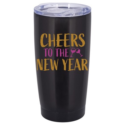 100 North 20 Ounce Stainless Steel On the Go Travel Tumbler With Push Top Lid, Hello New Year Black