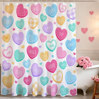 Valentines Shower Curtain 70.8"Cute Love Hearts Shower Curtain for Valentines Day Decorations, Sweetheart