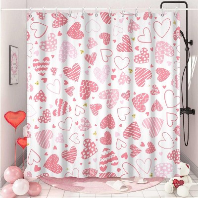 Valentines Shower Curtain - 70.8"Black and Pink Cute Bow Sweet Hearts Shower Curtain