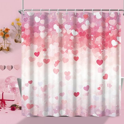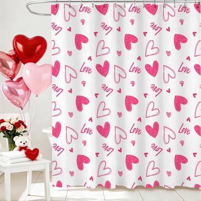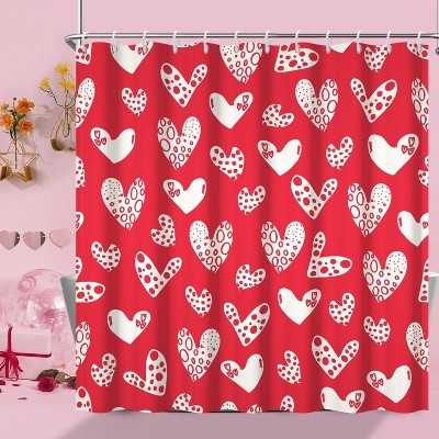 Valentines Shower Curtain, Romantic Red and White Heart Shower Curtain 70.8x70.8 Inch