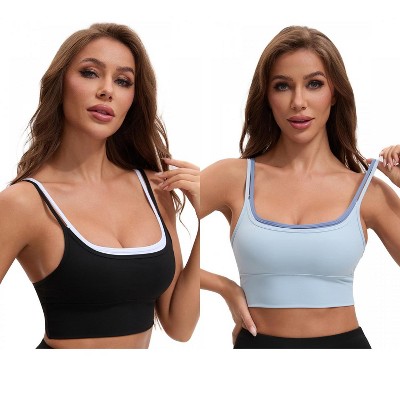 INSPIRE CHIC Women's Double Spaghetti Strap Longline Full Coverage Workout Padded Sports Bras 2 Packs
