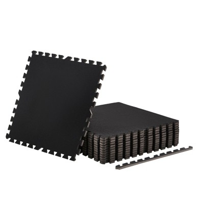 VEVOR Puzzle Exercise Mat, 12PCS Fitness Equipment Mats, 24 x 24 x 0.56 in, High-Density EVA Foam Gym Mats Set, Interlocking Rubber Soft Tiles,Black