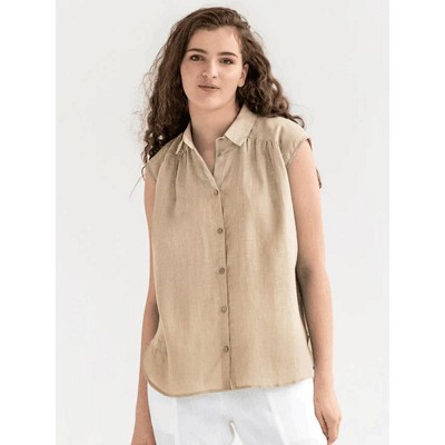 Coolmee Women's Cotton Tank Top V Neck Button Down Collared Sleeveless Shirts Casual Blouse Tops