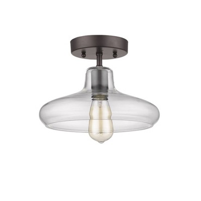 Chloe Lighting Dickens Industrial-Style 1 Light Rubbed Bronze Semi-Flush Ceiling Fixture 11" Shade