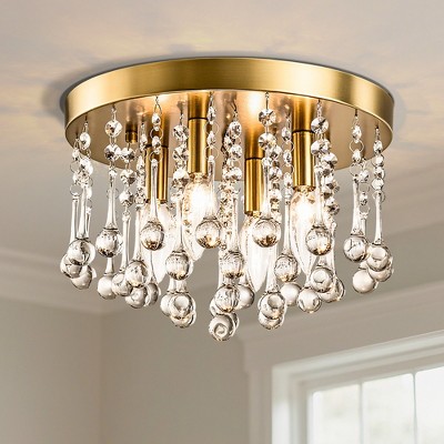 Maxax 11.8" Black Crystal Flush Mount Ceiling Light, 4-Light Dimmable Fixture ¨C Glam Droplet Design for Bedroom, Entryway, Living Room