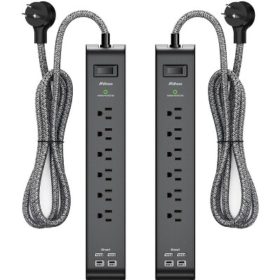 Itopfox 2 Pack Surge Protector Power Strip with 6 Outlets 4 USB Ports 5-Foot Extension Cord Flat Plug 900 Joules 15A Circuit Breaker Wall Mount