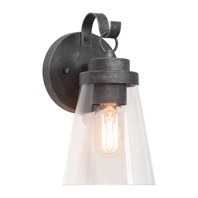 10" Metal/Glass Outdoor Wall Lamp Black/Silver - LNC: ETL Listed, Weather-Resistant, Cylinder Shade