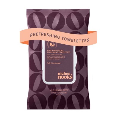 Niches & Nooks Intimate pH Balanced Refreshing Flushable Feminine Wipes - Soft Clementine - 45ct
