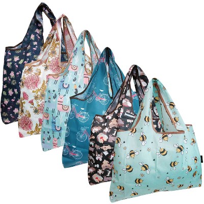 Wrapables Large Foldable Tote Nylon Reusable Grocery Bags, 6 Pack