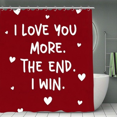Valentine's Day "I Love You More" Red Shower Curtain - High-Density Polyester, Soft, Waterproof, Privacy Protection, Giftable 70.8x70.8Inch