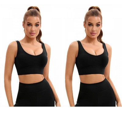 Allegra K Women's Medium Impact V Neck Wireless Padded Deep Fitness Sports Bras 2 Pcs