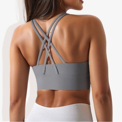 Anna-Kaci Active Women's Stretchy Cropped Banded Criss Cross Back Sports Bra
