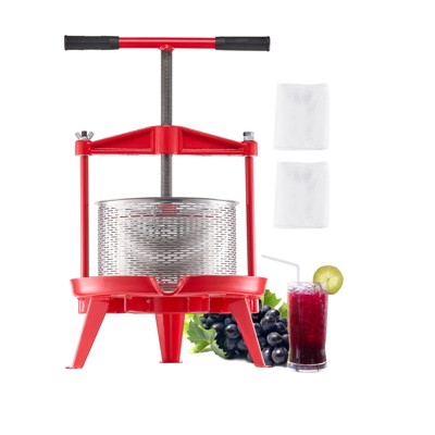 VEVOR 2.38 Gal/9L Fruit Wine Press, Stainless Steel Basket with Cross-beam and Triangular Structure, Manual Juice Maker, Red